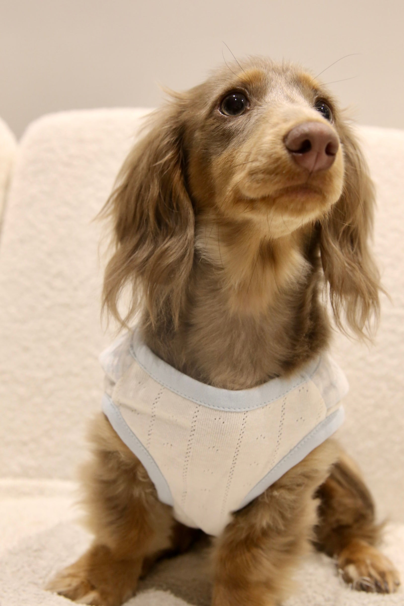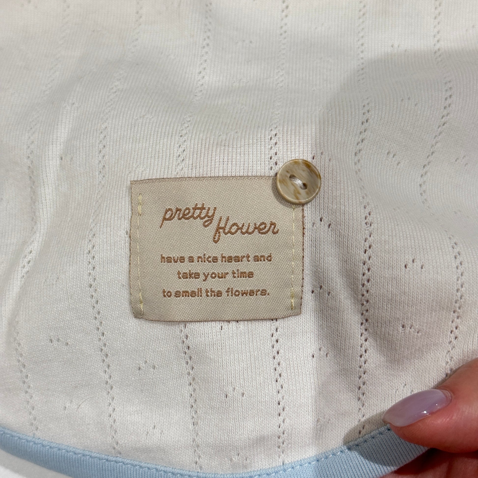Soft ivory knit with light blue gingham details — simple, fresh, and sweet. Made from cotton for comfort in everyday wear.